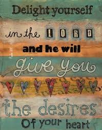 I found a site that gave me the Hebrew definition for “delight”. I found out it is a command (hmmm…..not a suggestion) and it translates as “exquisite delicacy”. (I admit I suddenly visualized a box of chocolates….not your ‘dime store’ version either). Seeing as I have a sweet tooth my ability to relate to the meaning was one of sheer delight! Yet, the command isn’t merely to have a good time with The Lord. It’s meant to be a celebration of the PRESENCE of The Lord. In the midst of our ‘celebrating’ He then gives us the desires of our heart. So, I guess this means that I have a responsibility in my hope of God granting me His gifts.